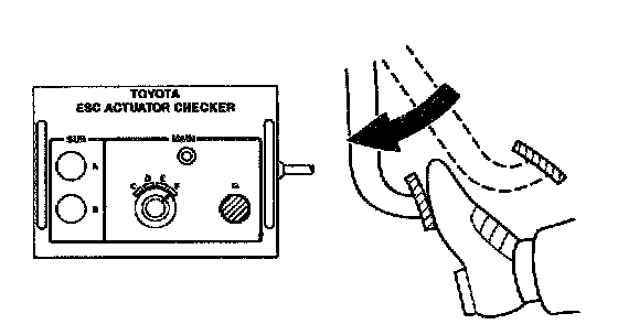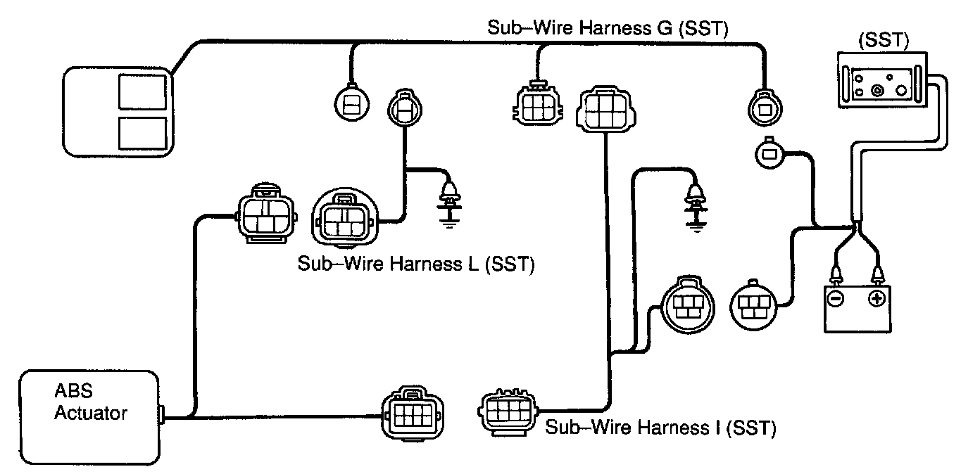 HINT: Using the ABS actuator checker (SST), check the operation of the actuator. If the actuator does not operate, check the operation of sub-wire harness G according to the instructions on pages DI-301 and DI-296. If the solenoid and/or pump motor relay are abnormal, replace the relay and inspect the actuator operation again.