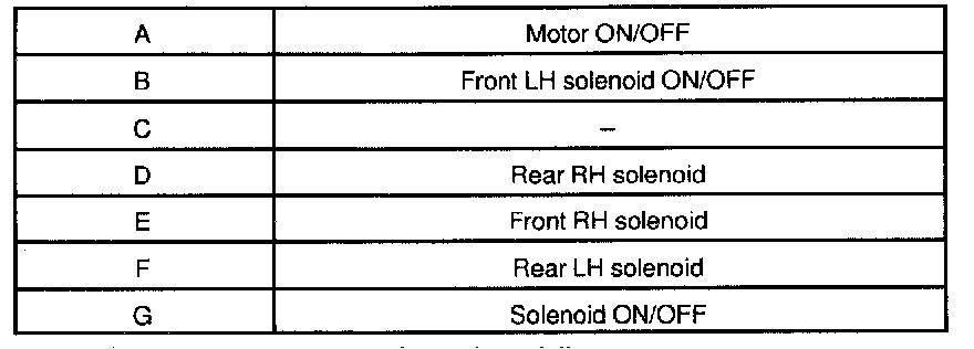 HINT: The functions of the ABS actuator checker switches are shown in the table.