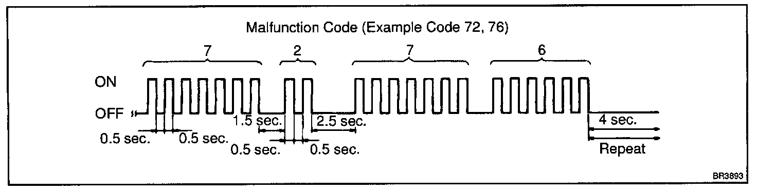 - If every sensor is normal, a normal code is output (A cycle of 0.25 sec. ON and 0.25 sec. OFF is repeated).