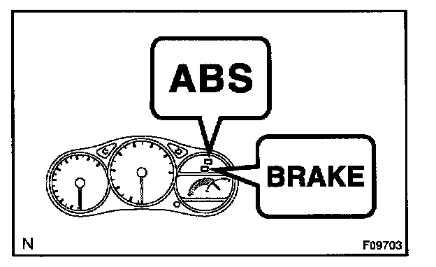 - If the indicator check result is not normal, proceed to troubleshooting for the ABS warning light circuit or BRAKE warning light circuit.