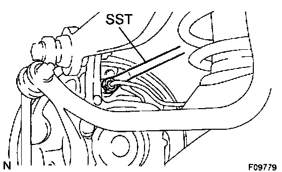 a. Using SST, disconnect the brake line. Use container to catch the brake fluid.