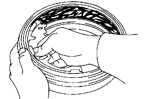 If the contact between the brake lining and drum is improper, repair the lining with a brake shoe grinder, or replace the brake shoe assembly.