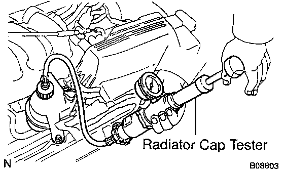 a. Fill the radiator with coolant and attach a radiator cap tester.