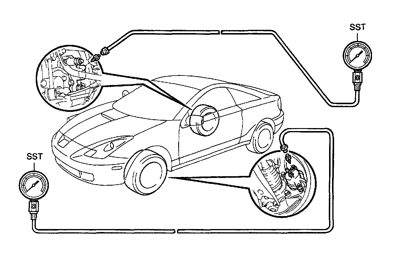 When inspecting the fluid pressure, inspect the left font and right rear together, and the right front and left rear together.