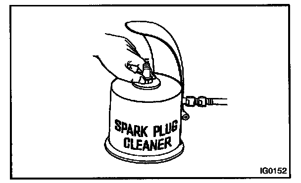 HINT: If there are traces of oil, remove it with gasoline before using the spark plug cleaner.
