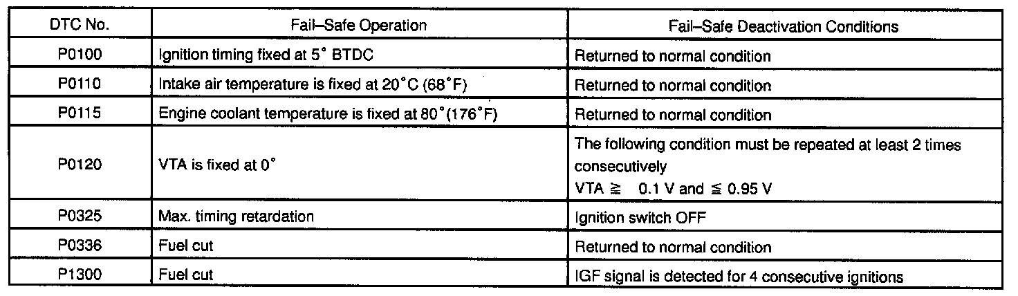 If any of the following codes is recorded, the ECM enters fail-safe mode.