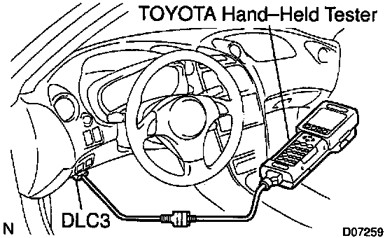 2. CONNECT TOYOTA HAND-HELD TESTER OR OBDII SCAN TOOL