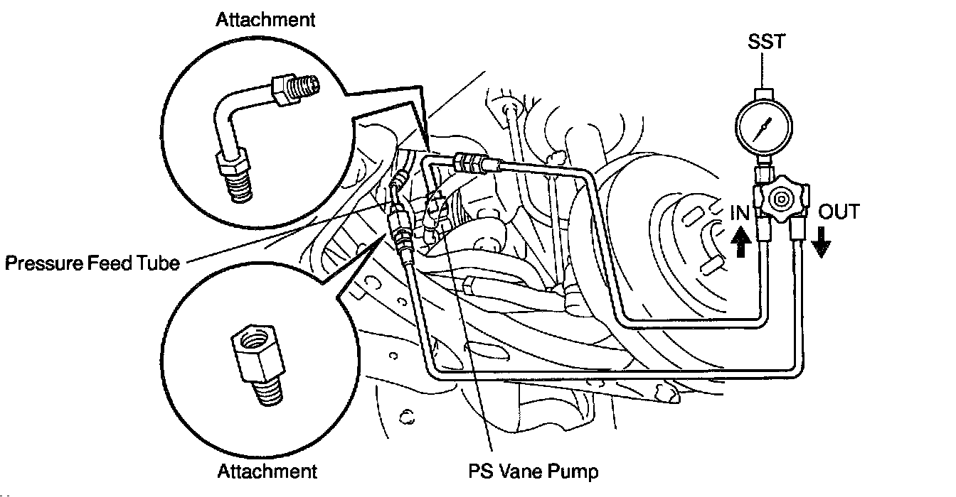 (f) With the engine idling, close the valve of the SST and observe the reading on the SST.
