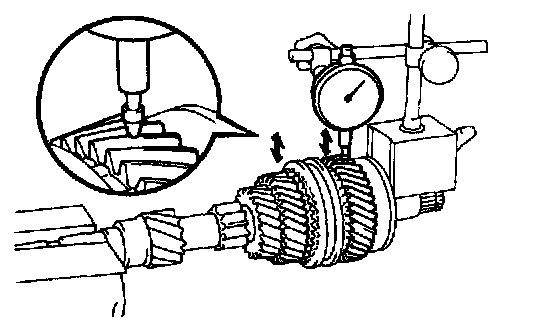 Using a dial indicator, measure the radial clearance between the gear and shaft.