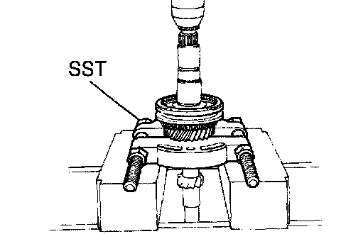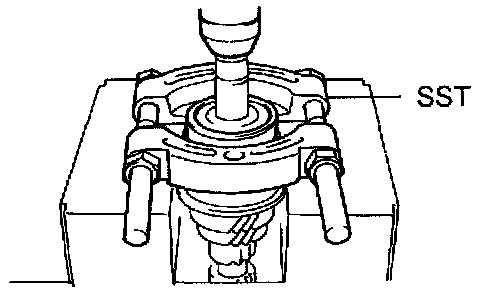 a. Using SST and a press, remove the rear radial ball bearing and 4th gear.