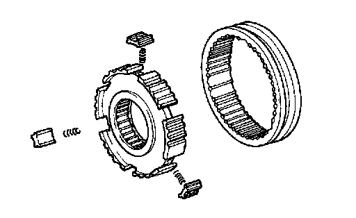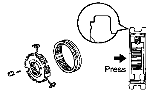 If the braking effect is insufficient, apply a small amount of the fine lapping compound between the synchronizer ring and gear cone. Lightly rub the synchronizer ring and gear cone together.
