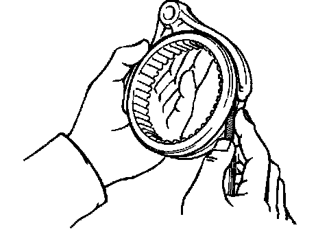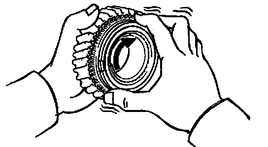 b. Check the braking effect of the synchronizer ring. Turn the synchronizer ring in one direction while pushing it to the gear cone. Check that the ring locks.