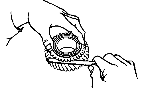 d. Using a feeler gauge, measure the clearance between the synchronizer ring back and gear spline end.