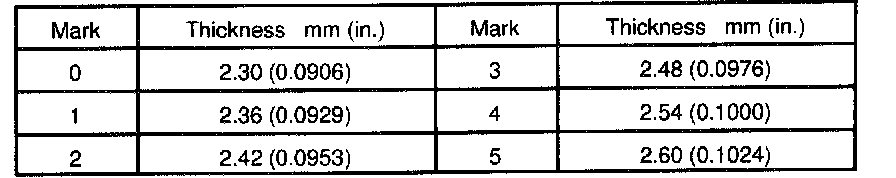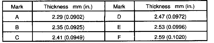 a. Select a snap ring from the table that will make the thrust clearance of the rear radial ball bearing less than 0.1 mm (0.0039 inch).