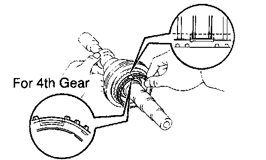 NOTICE: Distinguish the No. 2 synchronizer ring (for the 4th gear) by the teeth on the synchronizer ring.