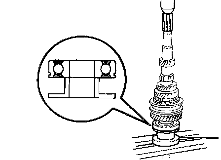 NOTICE: Be sure to install the rear radial ball bearing in the correct direction, as shown in the illustration.