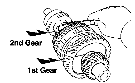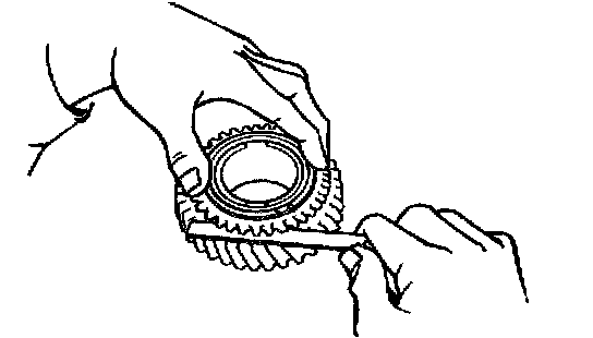 c. Using a feeler gauge, measure the clearance between the synchronizer ring back and gear spline end.