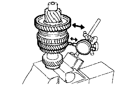 Using a dial indicator, measure the radial clearance between the gear and shaft