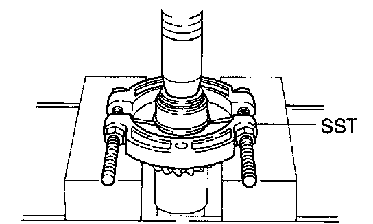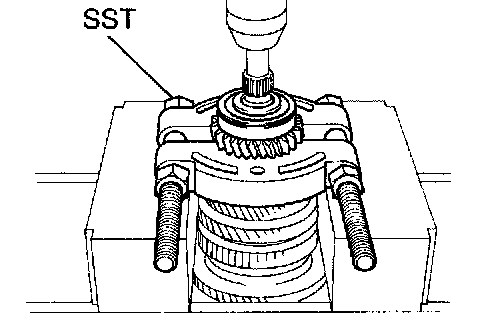 b. Using SST and a press, remove the 3rd driven gear and 2nd gear.
