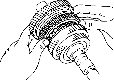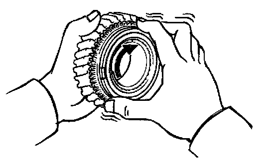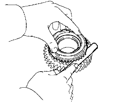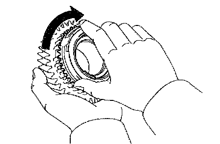 b. Check the braking effect of the synchronizer ring. Turn the synchronizer ring in one direction while pushing it to the gear cone. Check that the ring locks.