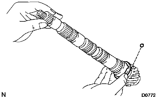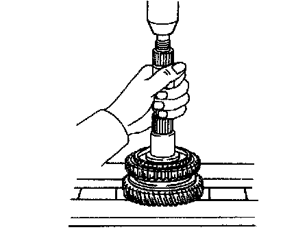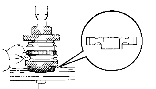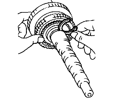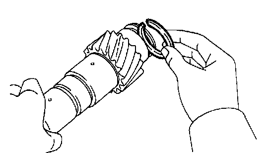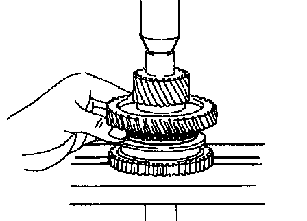 If the braking effect is insufficient, apply a small amount of the fine lapping compound between the synchronizer ring and gear cone. Lightly rub the synchronizer ring and gear cone together.