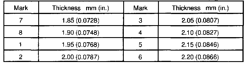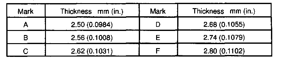 a. Select a snap ring from the table that will make the thrust clearance of the front bearing inner race less than 0.1 mm (0.0039 inch).