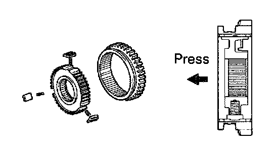 a. Using a press, remove the reverse gear assembly, 1st gear and No. 1 synchronizer ring.