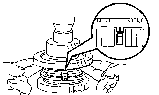 e. Place the reverse gear assembly and align the No. 1 synchronizer ring slots with the No. 1 shifting keys.