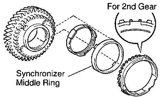 - Properly fit the synchronizer middle ring claws into the holes in the 2nd gear.