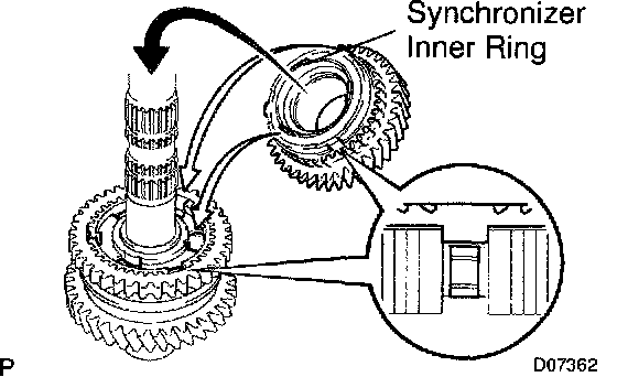 NOTICE: Distinguish the No. 1 synchronizer ring by the teeth on the synchronizer ring.