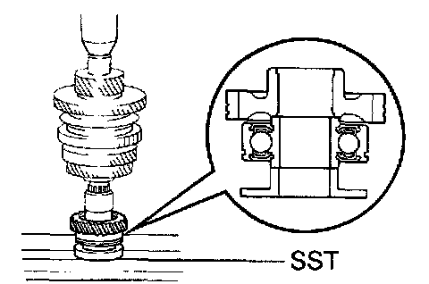 b. Using SST and a press, install the 4th driven gear and rear radial ball bearing.