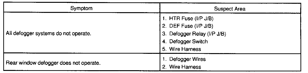 Problem Symptoms Table - Defogger System: