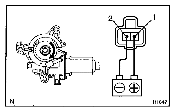 a. Connect the positive (+) lead from the battery to terminal 1 and the negative (-) lead to terminal 2, check that the motor turns clockwise.