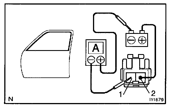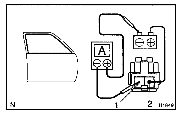 b. Connect the positive (+) lead from the ammeter to terminal 1 of the wire harness side connector and the negative (-) lead to negative terminal of the battery.