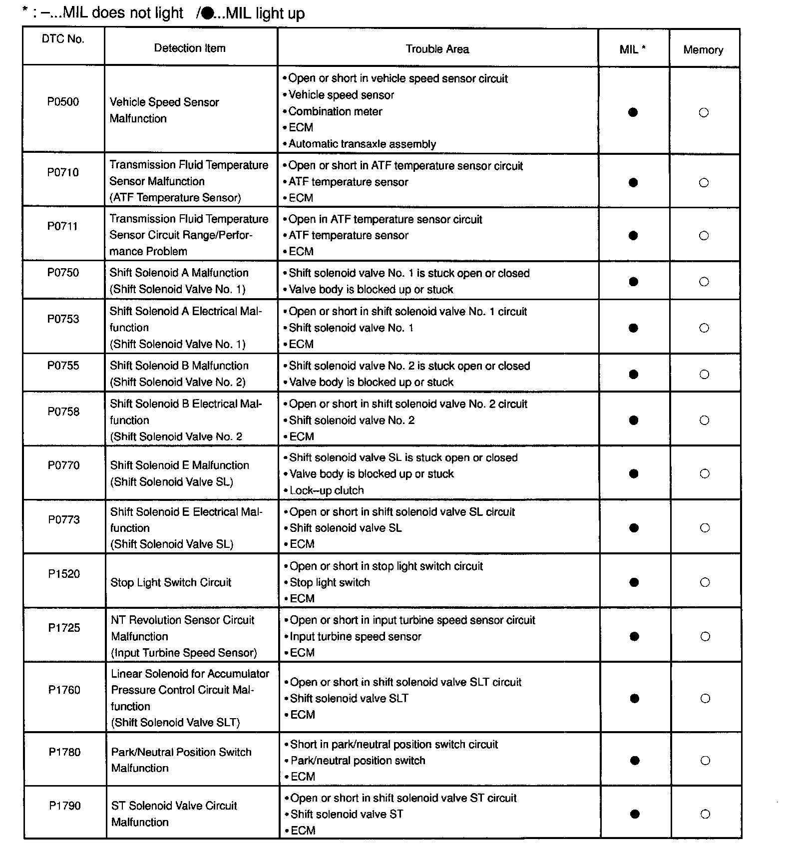 A L L Diagnostic Trouble Codes ( DTC )