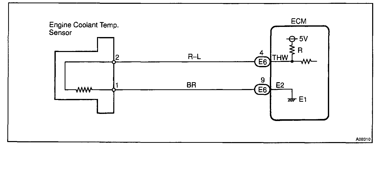 A thermistor built into the engine coolant temperature sensor changes the resistance value according to the engine coolant temperature.