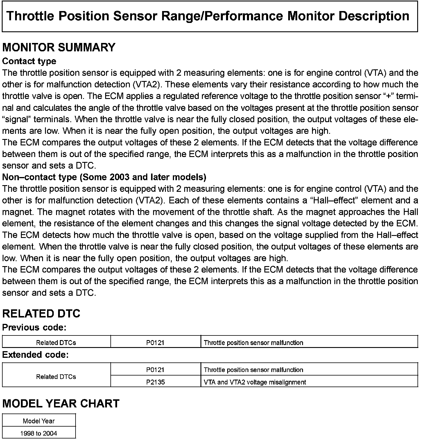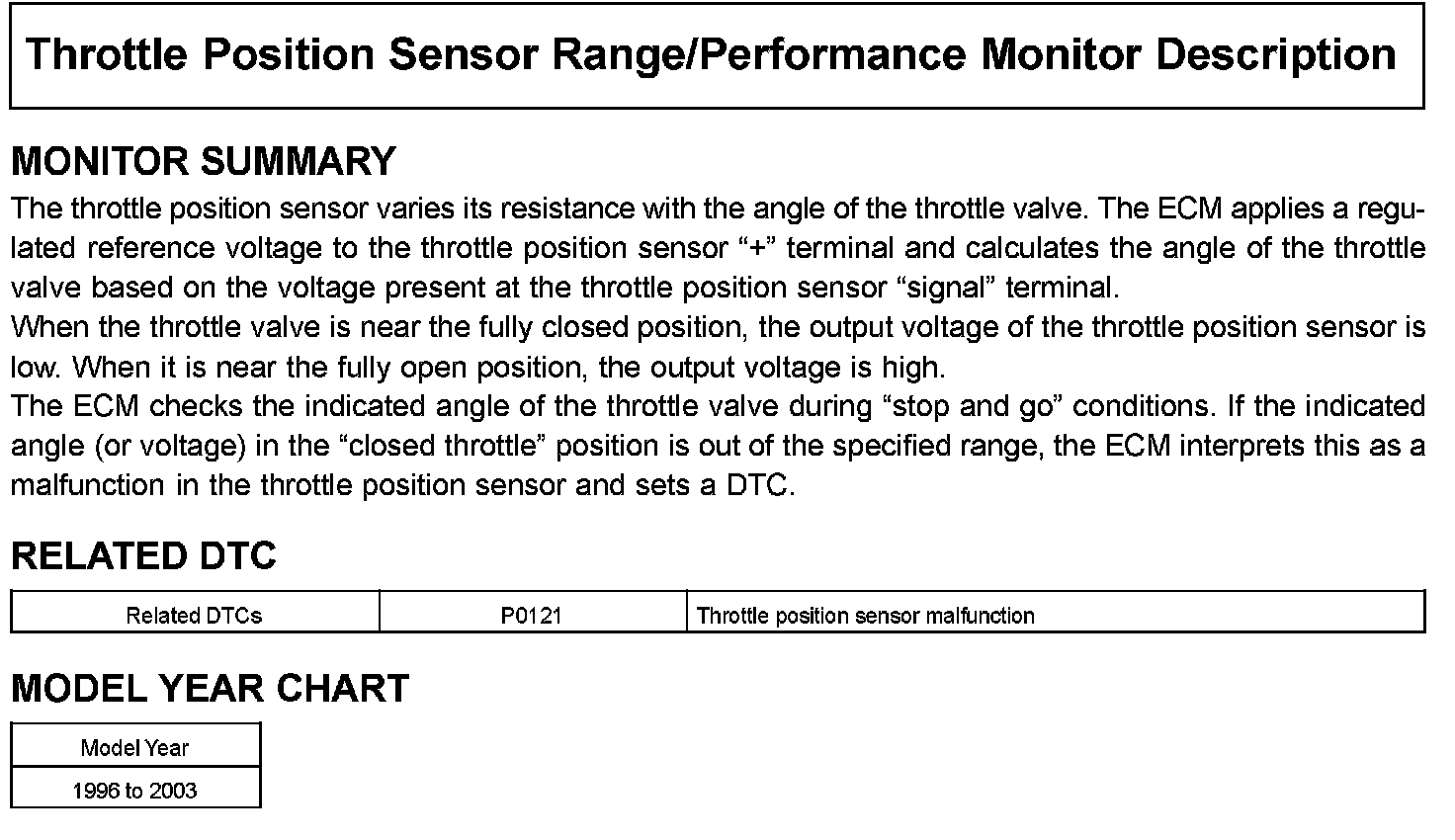Throttle Position Sensor Range/Performance Monitor Description