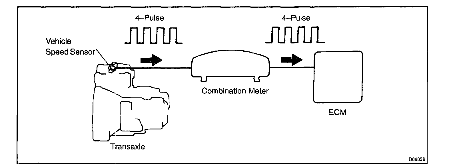 The vehicle speed sensor outputs a 4-pulse signal for every revolution of the transaxle output shaft.