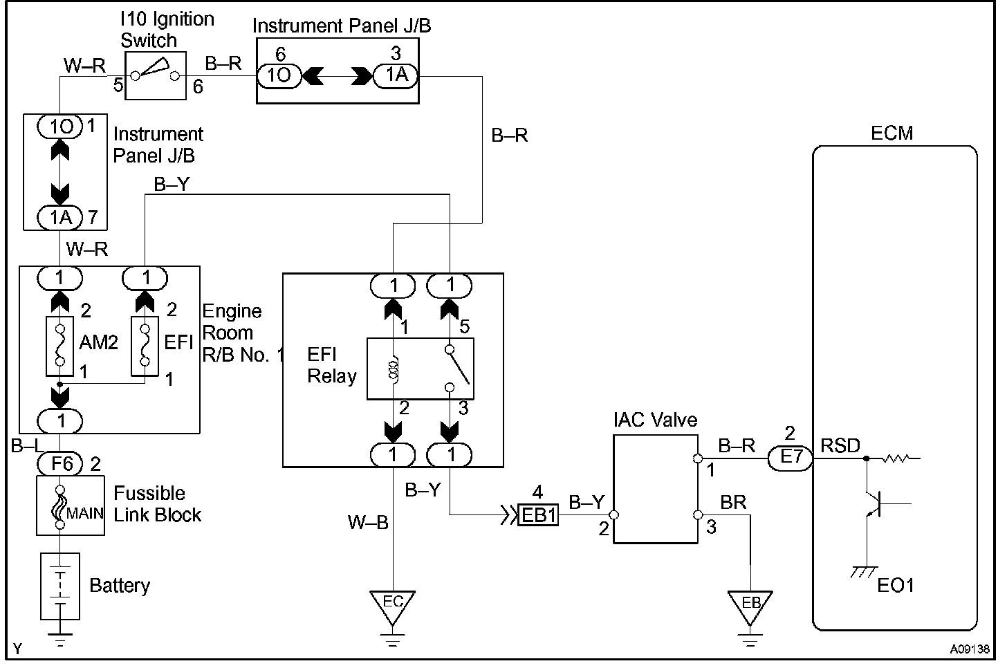 The ECM operates only the IAC valve to perform idle-up and provide feedback for the target idling speed.