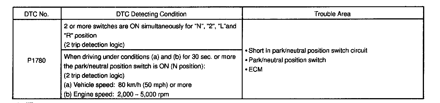 P1780 - Park/Neutral Position Switch Malfunction (Only For A/T)CIRCUIT DESCRIPTION
