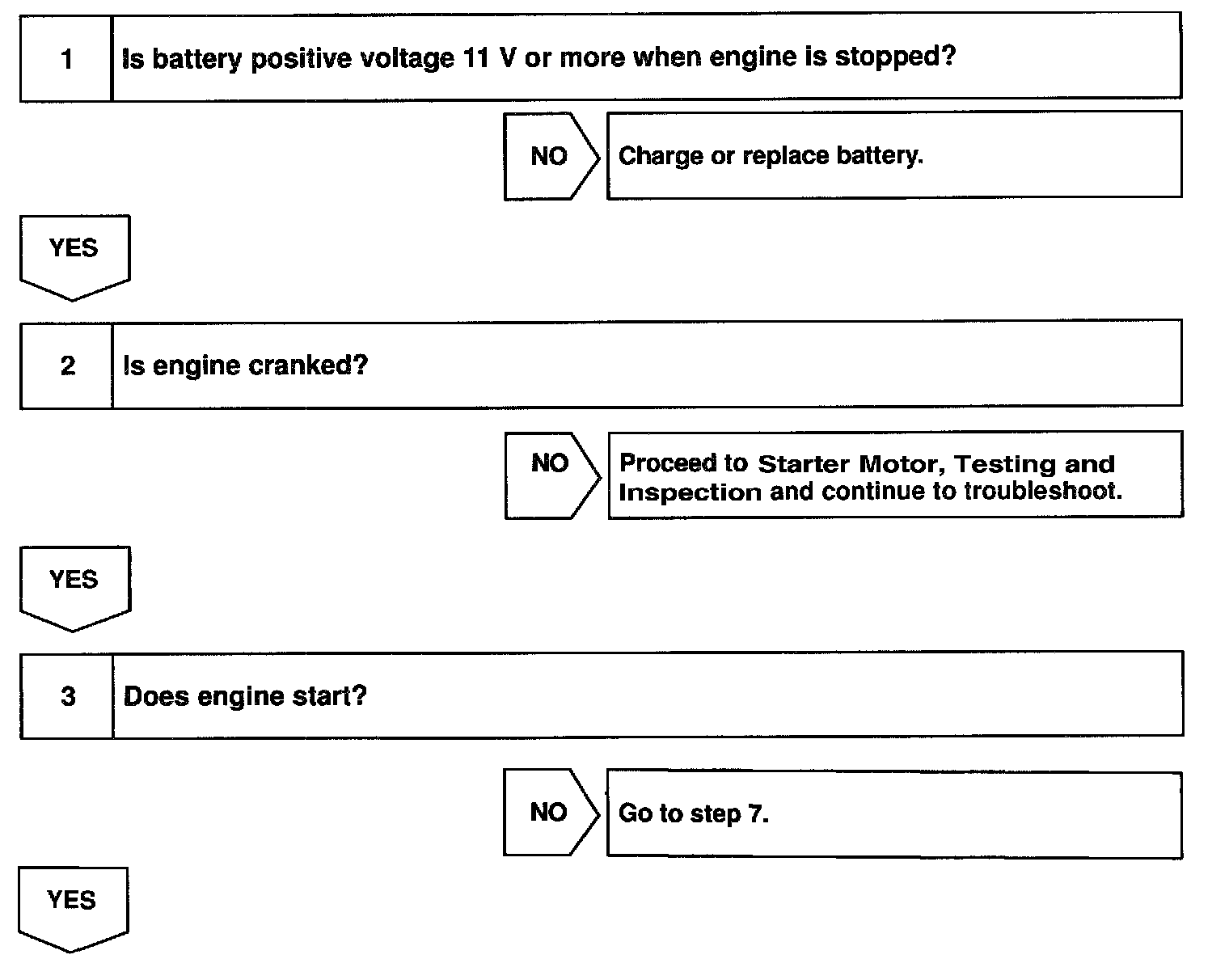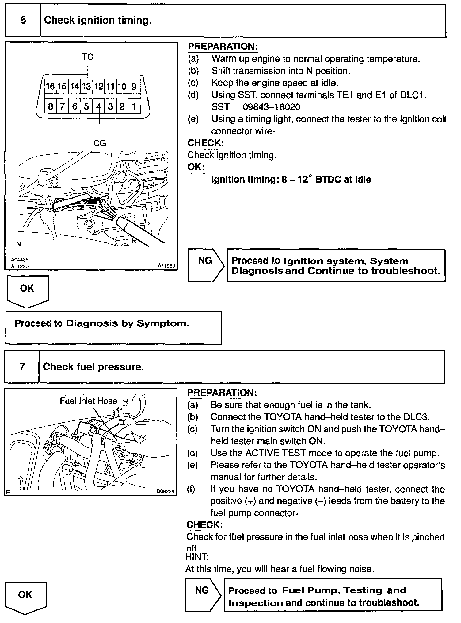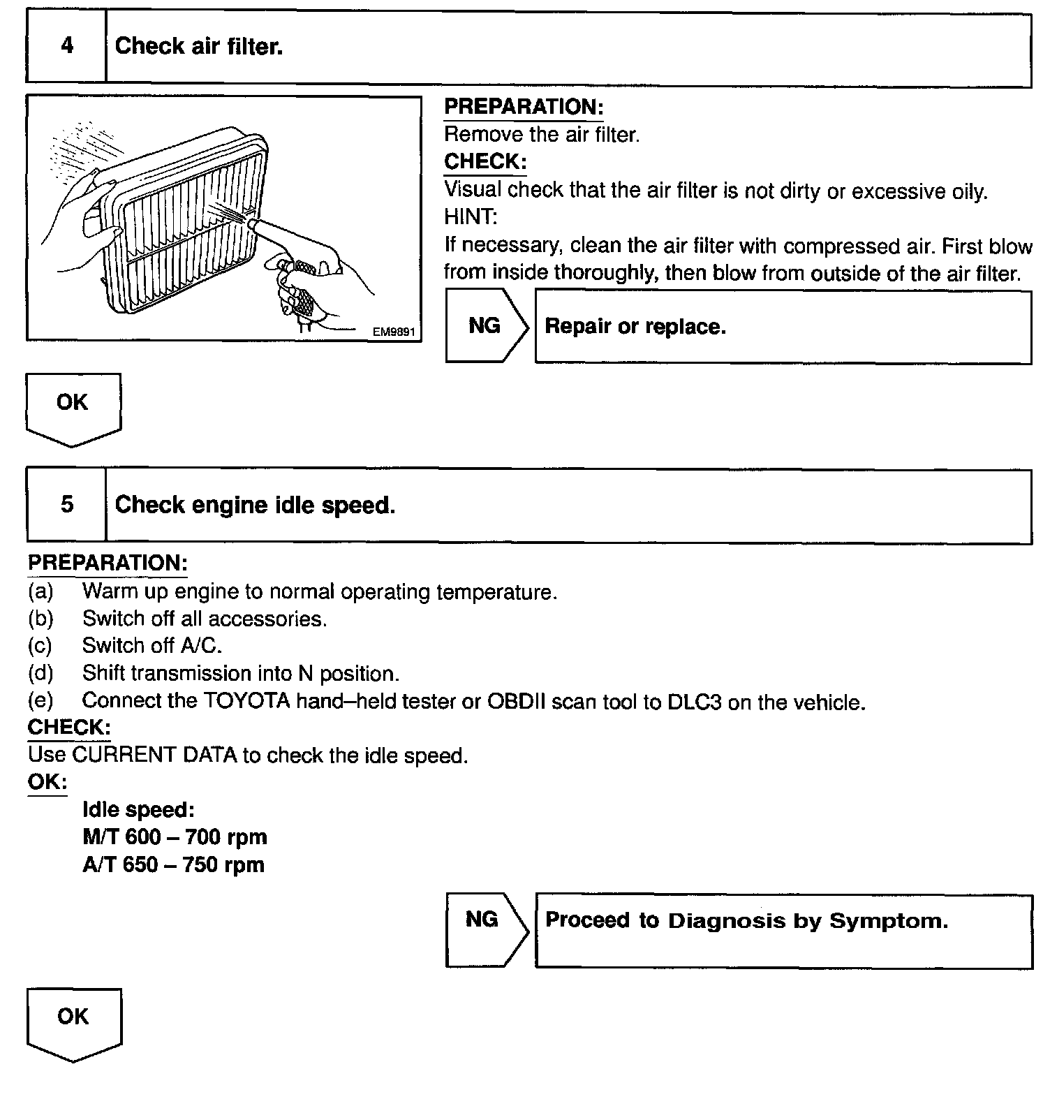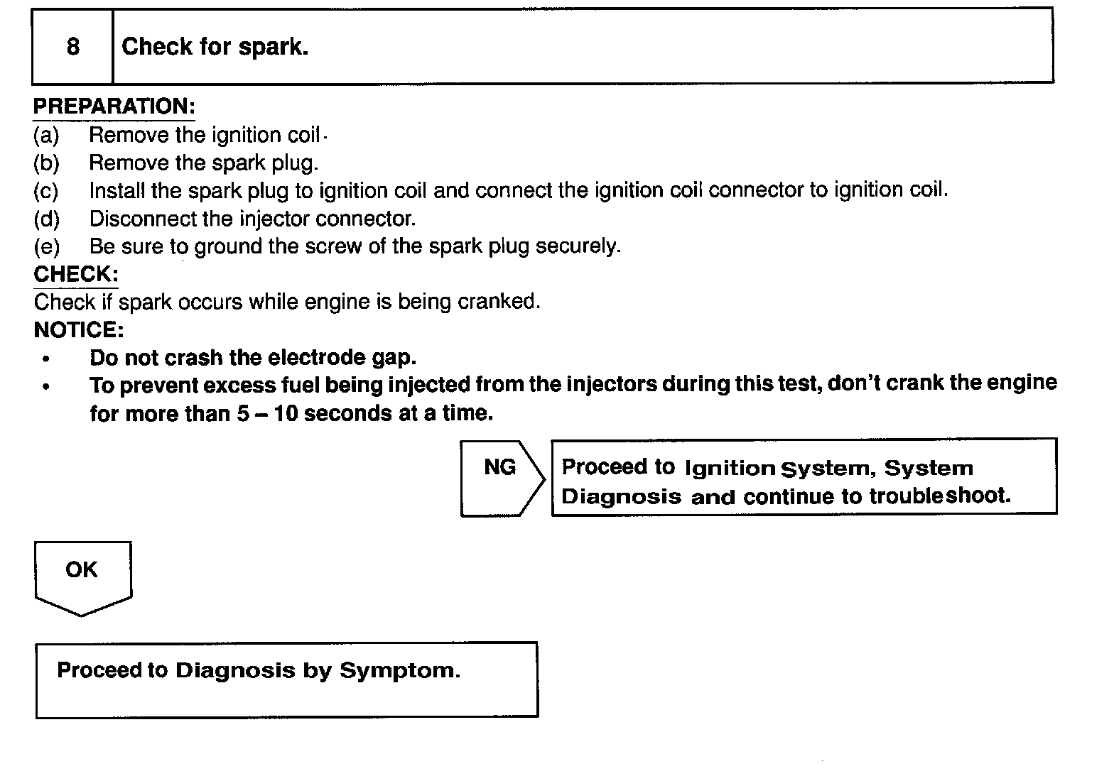 When the malfunction code is not confirmed in the DTC check, troubleshooting should be performed in the order for all possible circuits to be considered as the causes of the problems. In many cases, by carrying out the basic engine check shown in the flow chart, the location causing the problem can be found quickly and efficiently. Therefore, use of this check is essential in engine troubleshooting.