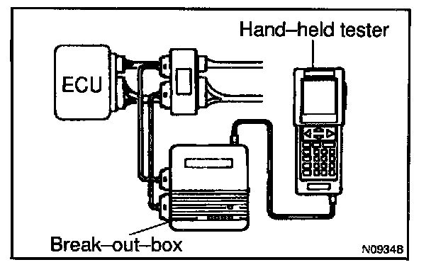 a. Hook up the TOYOTA break-out-box and TOYOTA hand-held tester to the vehicle.