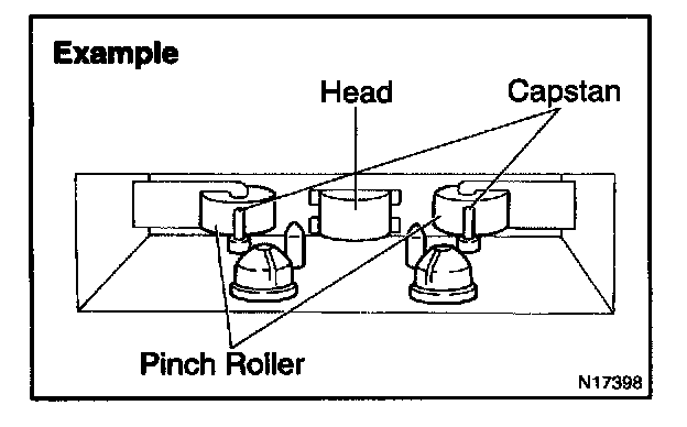 b. Using a cleaning pen or cotton applicator soaked in cleaner, clean the head surface, pinch rollers and capstans.