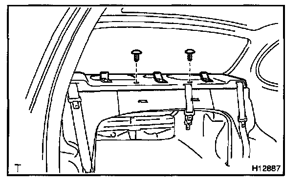 b. Remove the rear seat belts through the cutout on the package tray trim.
