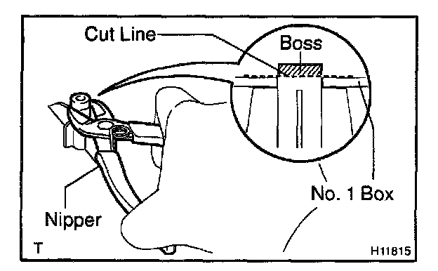 a. Cut off the boss using a nipper to make the level of the surface equal to the No. 1 box.
