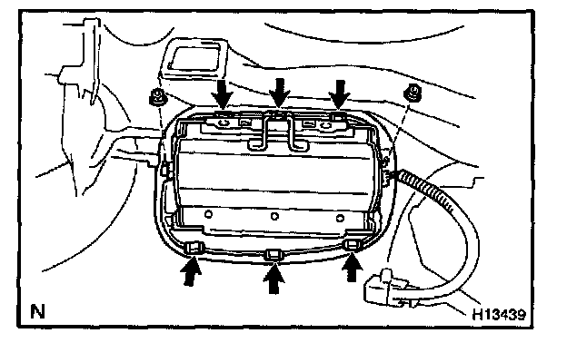 NOTE: When removing the front passenger airbag assembly, take care not to damage the wire harness.