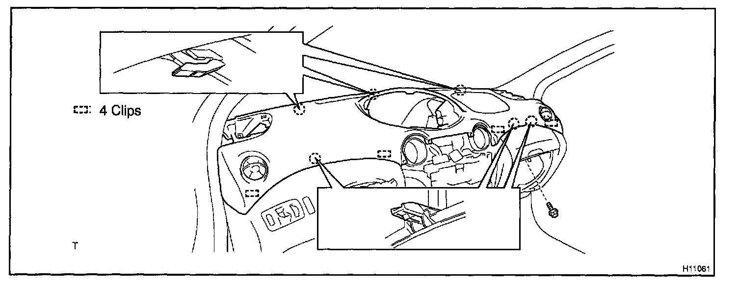 a. Using a screwdriver, remove the upper cluster finish panel as shown in the illustration.