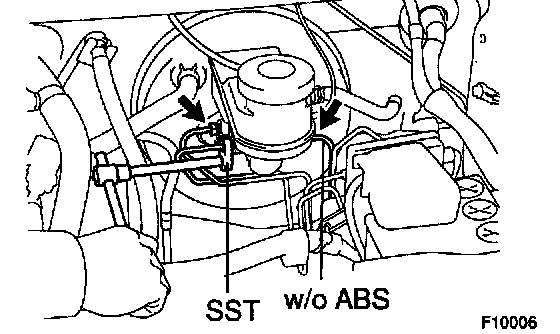 Using SST, disconnect the 2 or 3 brake lines from the master cylinder.