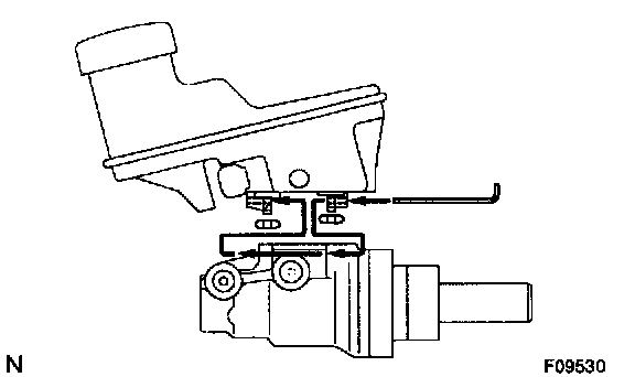 HINT: At the time of installation, make sure to insert the reservoir stopper through holes of the reservoir and the master cylinder groove.
