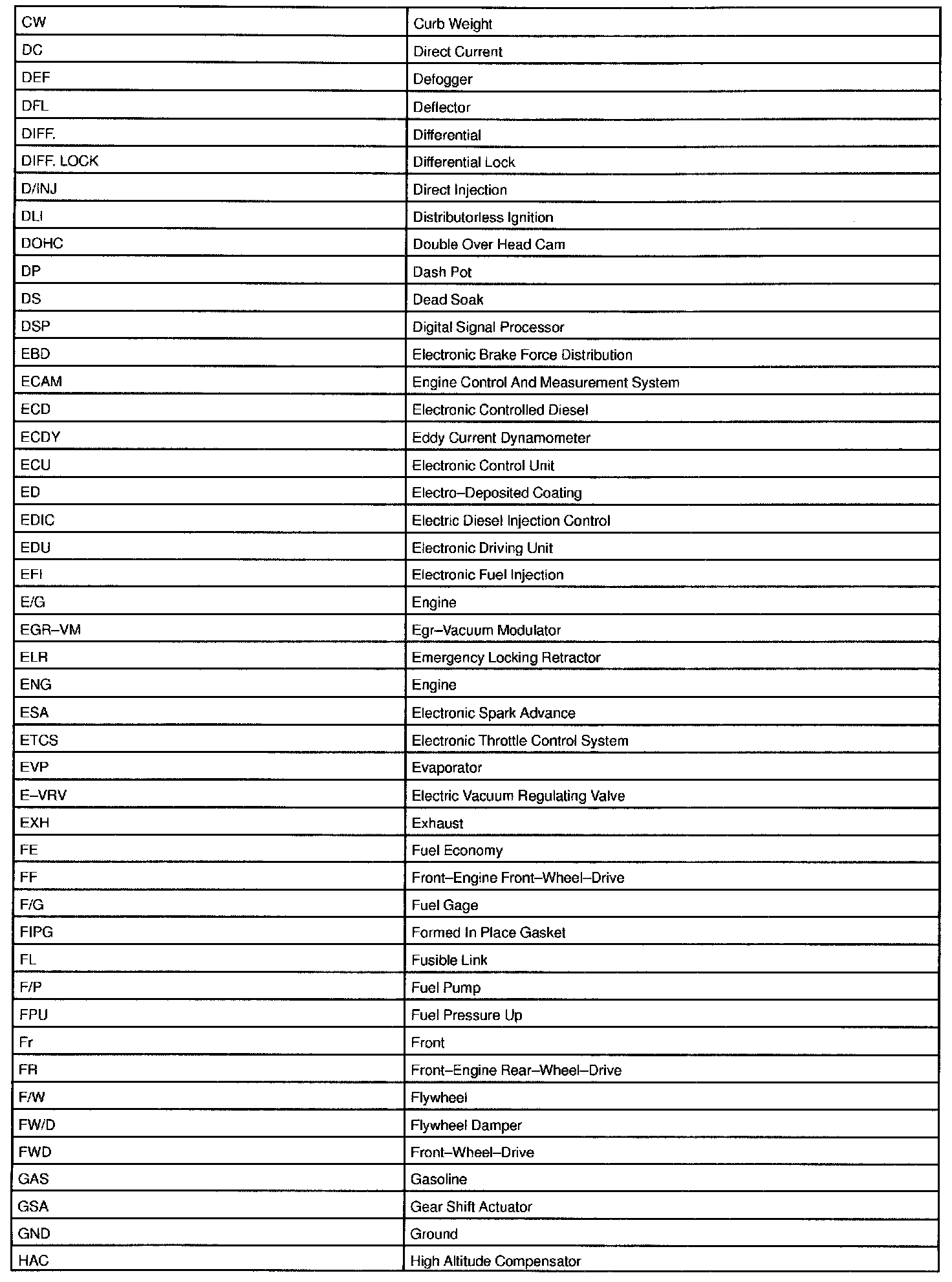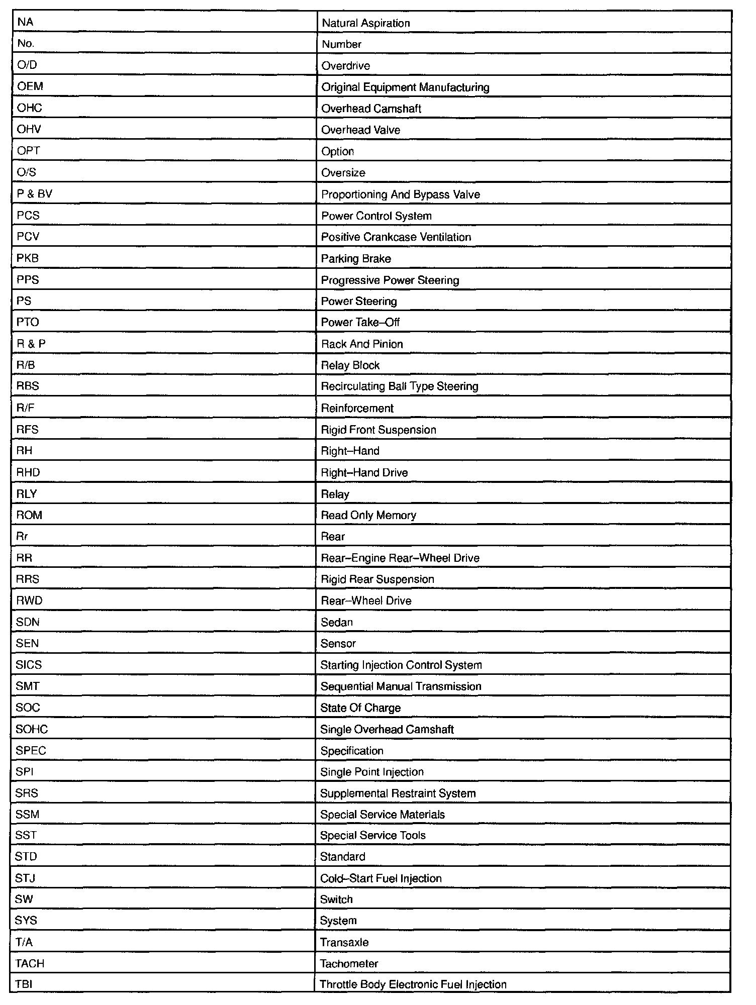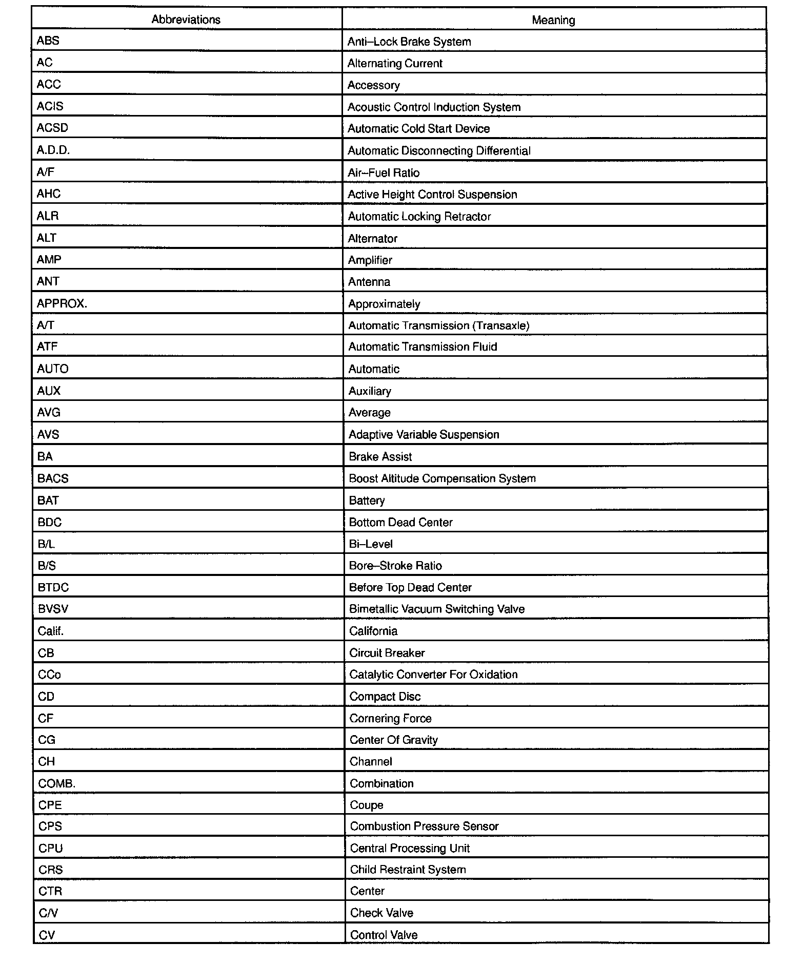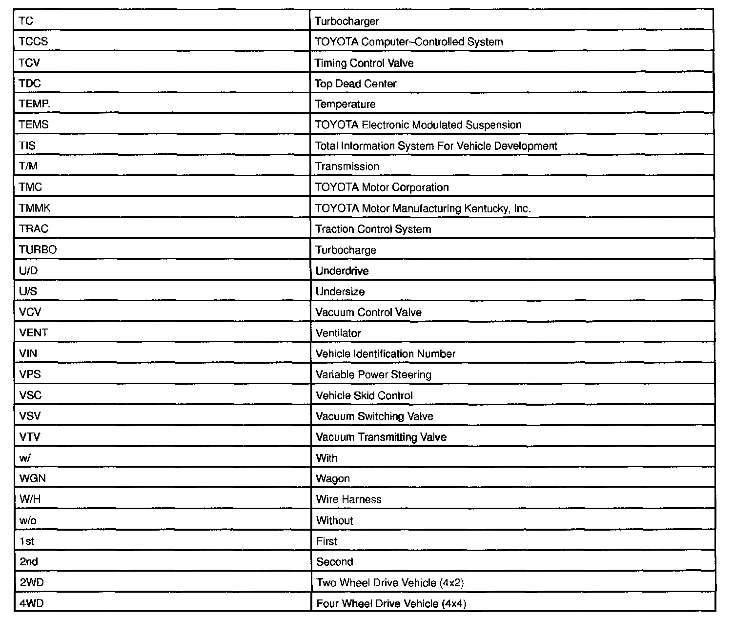 Abbreviations Used By TOYOTA